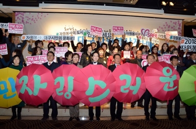 권영진 대구시장은 “한 해 동안 어려운 이웃을 위해 따뜻한 나눔과 사랑을 실천해주신 자원봉사자 여러분의 노고에 감사드린다”며 “새해에도 자원봉사로 더 안녕한 도시, 시민이 행복한 대구를 함께 만들어 가자”고 말했다.