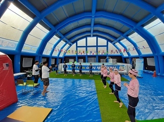 한편 에어돔 형태의 수영장은 실내온도 및 수온유지가 적절해 학생들이 따뜻하게 수업에 참여할 수 있고 생활체육지도자 자격증을 갖춘 2인 생존수영강사의 수업으로 진행되며 학교운동장에 설치된 수영장이라 공간에 대한 부담감 물에 대한 공포도 줄어들어 유치원을 포함한 전교생이 즐겁게 수업에 참여하고 있다.