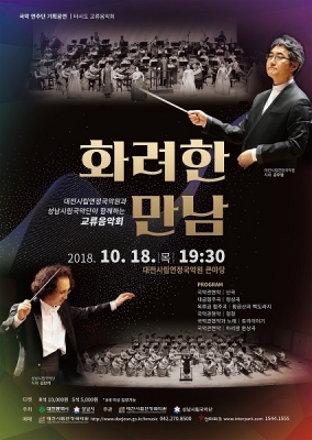 이번 ‘화려한 만남’에는 다양한 프로그램을 선보이며 국악의 전통성과 대중성을 한 번에 사로잡은 대전시립연정국악연주단과 문화예술도시성남으로 거듭나기 위해 창단된 성남시립국악단이 함께하는 무대로, 교류지휘는 물론 단을 대표하는 연주자들의 교류 협연 무대가 펼쳐지며, 파워풀하고 화려함이 극에 치닫는 대규모 공연을 만날 수 있다.