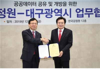 [충청뉴스큐] 대구광역시와 한국감정원은 13일 한국감정원에서 양 기관의 관계자들이 참석한 가운데 ‘공공정보 공유 및 개방을 위한 상생협력 업무협약’을 체결했다.