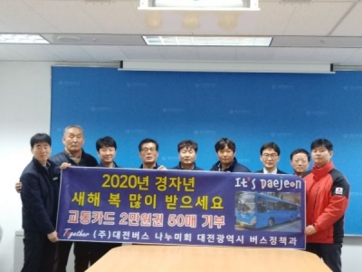 [충청뉴스큐] 16일 대전버스 운수종사자모임 ‘나눔’은 대전광역시청을 방문해 연말 어려운 이웃에 도움이 되고 시내버스 이용의 활성화를 위해 사회복지공동모금회에 교통카드 1만원권 100장을 전달했다.