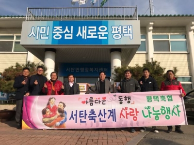 라진수 서탄면장은 “오늘같이 추운 날씨에도 어려운 이웃을 위해서 따뜻한 마음을 전달한 서탄축산계 회원들께 깊은 감사를 드린다”며 격려를 아끼지 않았다.
