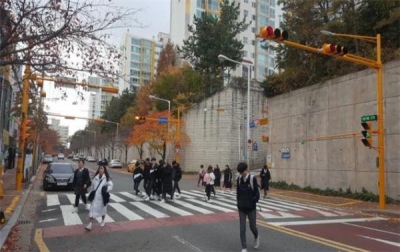 또한 학교 앞 어린이보호구역 내 신호교차로를 보행자의 사고예방 효과를 높이기 위해 교통신호등 지지대와 신호등까지 전체를 노란색으로 교체했다.