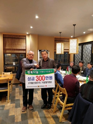 [충청뉴스큐] 평택시 팽성추팔산업단지 기업협의회는 지난 20일 송년회 자리에서 관내 소외계층에게 써달라며 성금 300만원을 팽성읍행정복지센터에 전달했다.