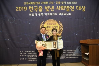 [충청뉴스큐] 경기도의회 여성가족평생교육위원회 박옥분 위원장은 지난 19일 2019 한국을 빛낸 사회발전 대상 조직위원회가 주최하고 한국언론인연합회와 뉴데이 뉴스 신문사가 주관한 사회발전대상 ‘올해의 의정 대상’을 수상하는 영예를 안았다.