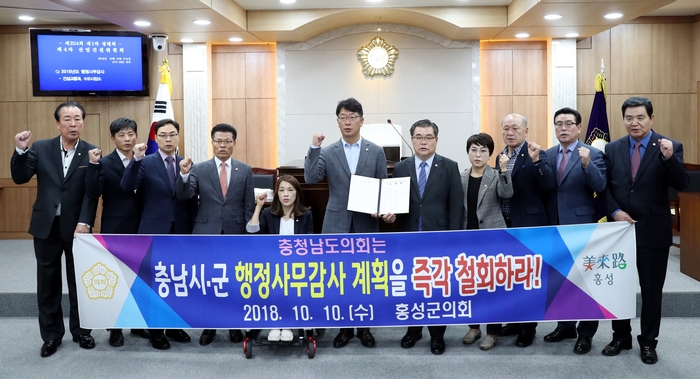 한편 홍성군의회는 지난해 제244회 홍성군의회 제1차 정례회에서도 도의회가15개 시·군에 대하여행정사무감사를 할 수 있도록 하는 「충청남도의회 행정사무감사 및 조사에 관한 조례」의 일부개정안 철회를 강력히 촉구한 바 있다.