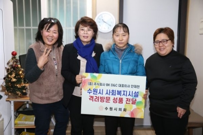 이날 김 위원장은 시설을 살펴보며 운영 등에 대한 애로사항을 청취하고 시설 종사자·입소자와 환담을 나눈 뒤, 주식회사 BK D&C에서 사회복지시설에 기부 의뢰한 후원금을 전달했다.