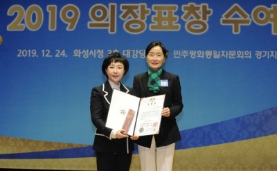[충청뉴스큐] 수원시의회 이미경 의원이 24일 화성시청 3층 대강당에서 개최된 2019년 민주평화통일자문회의 표창 수여식에서 의장 표창을 수상했다.