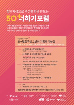 [충청뉴스큐] 서울시50플러스재단은 2016∼2018년까지 3년간 이루어진 50+펠로우십 활동에 대해 공유하고 확장 가능성을 모색하기 위해 오는 31일 서부캠퍼스에서 50더하기포럼을 진행한다.