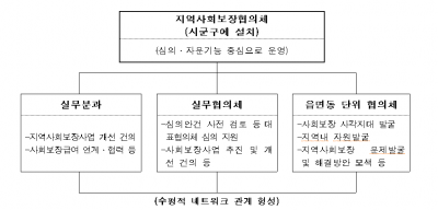 또한 읍면동 협의체는 사회보장 관련 기관 간 연계와 협력으로 사회보장급여가 필요한 지원대상자를 발굴하고 필요한 서비스를 제공하는데 있어 핵심 역할을 수행하고 있다.