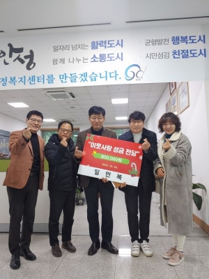 이번 연말 기부 행사는 지난 24일 안성서부발전협의회에서 난방비 140만원, 일만복에서 후원금 80만원과 쌀10kg 2포, 라면 등 생필품을 기부했다.