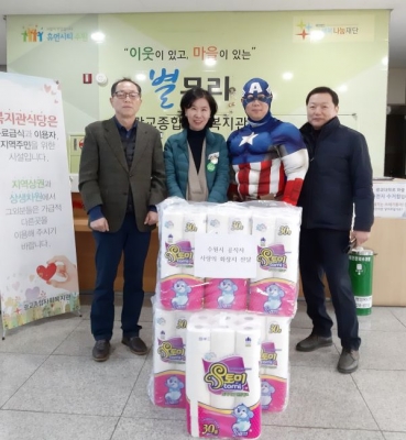 [충청뉴스큐] 수원시가 27일 연무사회복지관, 광교종합사회복지관 등 관내 6개 종합사회복지기관을 방문해 ‘사랑의 화장지’ 2000여 롤을 전달했다.