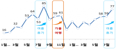 국립공원 관련 민원은 여름 휴가철과 가을 여행 기간인 10월과 11월에 가장 많이 발생한 것으로 나타났다.