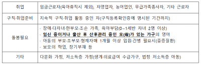어린이집 종일반은 장시간 돌봄이 필요한 맞벌이·장애인·다자녀·한부모·조손가족, 다문화·저소득층, 임신 중이거나 출산 후 산후 관리 중인 어머니가 있는 가정의 자녀들이 이용할 수 있다.
