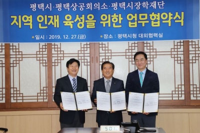 평택시는 지난 27일 평택시 장학재단, 평택상공회의소와 함께 지역 인재 육성 사업을 도모하기 위한 업무협약식을 가졌다고 밝혔다.