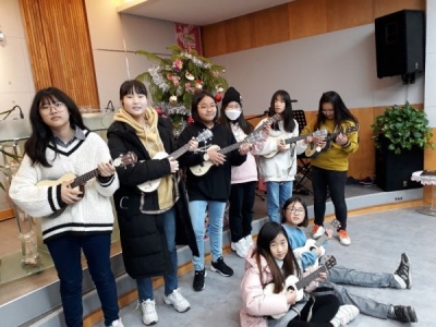 신평동지사협은 아동·청소년의 꿈지원장학사업의 일환인 ‘꽃들에게 희망을’으로 지역아동센터를 이용하는 아동들에게 우쿨렐레 등 총27점의 악기를 지원했고 지역아동센터는 재능 나눔 강사를 통해 악기수업을 진행해 행복한 우쿨렐레연주단으로 발표회를 개최했다.
