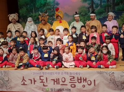 [충청뉴스큐] 청주시립도서관은 지난 9월 12일부터 시작한 하반기 동극 ‘소가 된 게으름뱅이’공연을 성황리에 마쳤다. 이번공연은 6회의 단체관람과 2회의 개인관람으로 운영되어, 지역 내 어린이집 어린이들과 지역주민들 1,200명이 관람할 정도로 큰 인기를 얻었다.