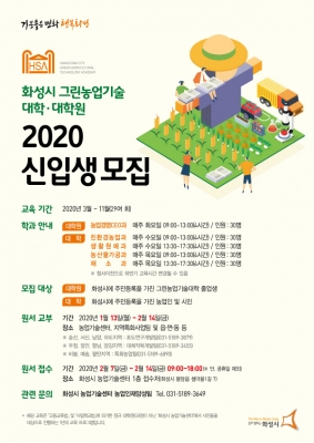 [충청뉴스큐] 화성시 농업기술센터가 2020학년도 그린농업기술대학 및 대학원 신입생을 모집한다.