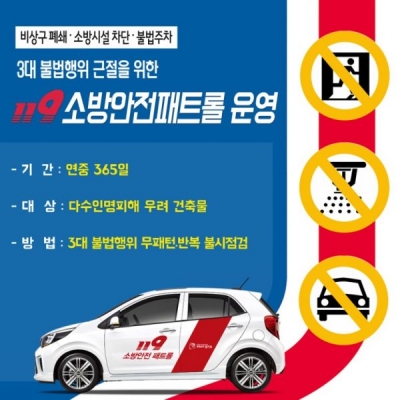 [충청뉴스큐] 경기도북부소방재난본부는 올해에도 ‘경기북부 119소방안전패트롤’을 통해 대형화재 및 인명피해의 주요 원인인 3대 불법행위의 근절에 나선다.