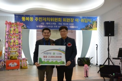 구문환 신임 위원장은 취임사를 통해 “통복동 주민자치위원회의 발전 뿐만 아니라 지역사회 발전 및 주민화합을 위해 모든 역량을 다하겠다”고 포부를 밝혔다.