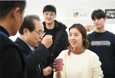 [충청뉴스큐] 오거돈 부산시장이 지난 14일 월드바리스타챔피언십 한국인 최초 우승을 차지한 바리스타 전주연 씨를 만나기 위해 ㈜모모스커피를 찾았다.