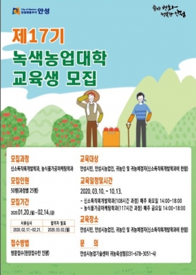 [충청뉴스큐] 안성시농업기술센터는 오는 20일부터 녹색농업대학 교육생을 50명을 모집한다.