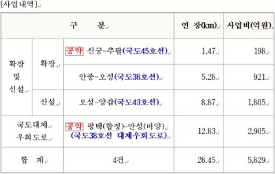 시는 상습적인 교통정체 해소를 위해 국도 확장 및 신설분야 3개 노선, 국도 대체우회도로 1개 노선 등 총 4개 노선 사업이 시급함에 따라 국토교통부에 지속적인 건의, 국토부장관 면담 등 꾸준한 협의를 통해 결국 대상사업에 포함되는 성과를 얻었다.