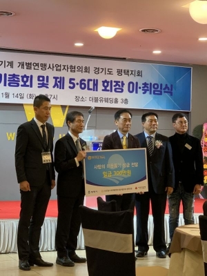 [충청뉴스큐] 건설기계개별연명사업자협의회 평택지회는 지난 14일 제6대 회장 취임식을 맞아 어려운 이웃에게 써달라며 성금 300만원을 기탁했다.