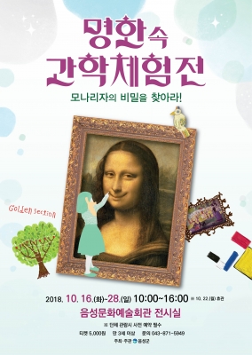 [충청뉴스큐] 음성문화예술회관 2018년 하반기 기획전시 ‘명화 속 과학 체험전’이 오늘부터 오는 28일 10시에서 오후 4시까지 음성문화예술회관 전시실에서 진행된다. 단, 매주 월요일은 휴관이다.