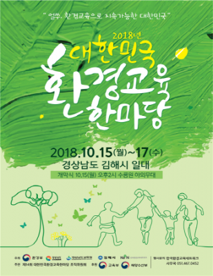 [충청뉴스큐] 환경부는 한국환경교육네트워크, 경상남도, 경상남도교육청, 김해시와 공동으로 15일부터 오는 17일까지 김해시 수릉원 일대에서 ‘2018년 대한민국 환경교육 한마당’을 개최한다.