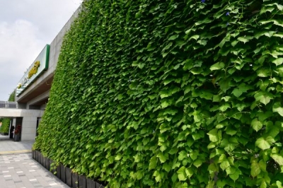 그린커튼은 일반 건물보다 여름철 실내 온도를 5도가량 낮춰 주고 덩굴식물의 넓은 잎이 먼지를 흡착해 주변 미세먼지 농도도 낮춰준다.