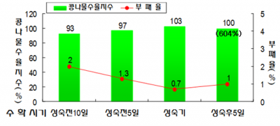 나물용 콩은 10월 중하순이 수확 적기이며, 일찍 수확하면 콩나물 수량이 줄고 말리는 데 오랜 시간이 걸리며 부패율도 는다.