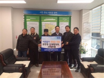 [충청뉴스큐] 평택시 송탄동 10개 단체협의회는 지난 20일 송탄동 행정복지센터에서 송탄동장과 10개 단체협의회 회원들이 참석한 가운데 ‘설맞이 사랑 나눔 이웃돕기’ 성금 전달식을 가졌다.