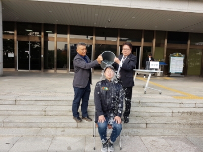 [충청뉴스큐] 경기도의회 제2교육위원회 황대호은 15일 오전 경기도의회 1층 정문 현관 앞에서 ‘루게릭병 요양 병원 건립’을 위한 아이스버킷 챌린지에 동참했다.