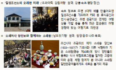 남은 2년 동안에는 지자체, 한국관광개발연구원과 함께 그동안의 사업성과를 집약해 국민들이 직접 체감할 수 있는 완성된 여행상품을 개발할 예정이다.