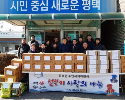 [충청뉴스큐] 평택시 통복동 주민자치위원회는 지난 21일 설명절을 맞이해 관내 어려운 이웃 50가구에 200만원 상당의 쌀과 라면, 만두 등의 후원품을 전달했다.