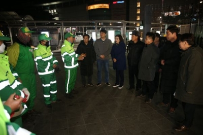 [충청뉴스큐] 수원시의회 도시환경교육위원회는 23일 새해부터 주간근무를 도입해 실시하고 있는 수원시 청소근로자들을 격려 방문했다.
