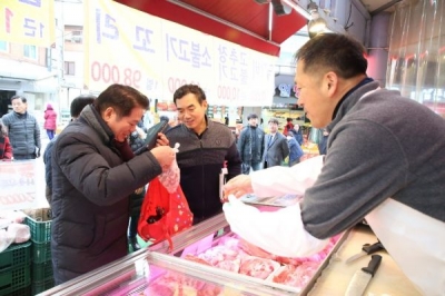 [충청뉴스큐] 최대호 안양시장이 설맞이 전통시장 투어를 벌였다.