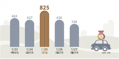 설 연휴 특별교통대책기간 동안 총 3279만명, 하루 평균 656만명이 이동할 것으로 예상되며 고속도로를 이용하는 차량대수는 1일 평균 472만 대로 예측된다.