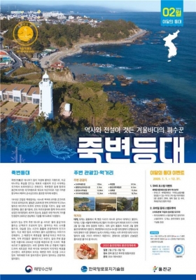 [충청뉴스큐] 해양수산부는 2월 이달의 등대로 경북 울진군 죽변면에 위치한 ‘죽변등대’를 선정했다.