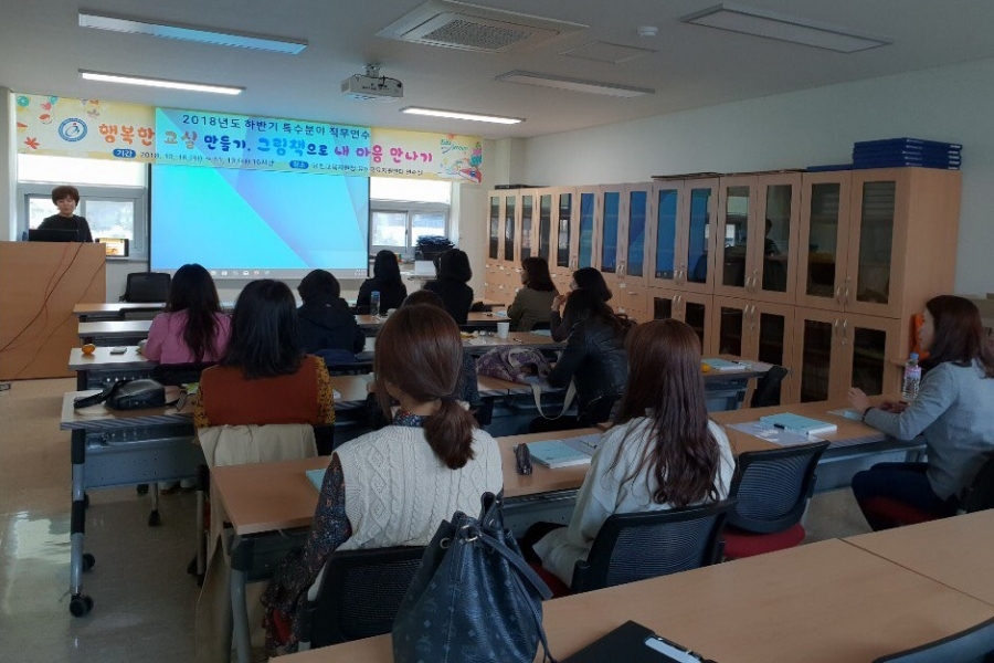 당진교육지원청(교육장 한홍덕)은 지난 16일부터 오는 11월 13일까지, 관내 특수교사 22명과 아산시 특수교사 2명을 대상으로 ‘2018년도 하반기 특수분야 직무연수’를 실시한다고 밝혔다. 충남초등특수교육연구회 학교혁신연합동아리와 공동 주관하에 실시되는 이번 연수는 ‘행복한 교실 만들기, 그림책으로 내 마음 만나기’를 주제로 총 5회기에 걸쳐 실시된다. 교육은 SP그림책연구소 박현숙 강사를 초청하여 그림책에 대한 기본적인 이해와 그림책을 활용한 스토리텔링·공감하기·표현하기 등 강의와 시청각교육, 토론 실습으로 구성될 방침이다. 한홍덕 교육장은 “이번 연수를 통해 그림책 놀이의 가치, 그림책의 구성 등을 심도있게 알아보고, 교육현장에서 아이들에게 독서에 대한 즐거움과 유익함을 일깨우길 바란다”라고 전했다.