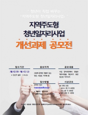 [충청뉴스큐] 행정안전부는 6일부터 오는 3월 6일까지‘지역주도형 청년일자리 사업’개선과제 공모전을 실시한다.