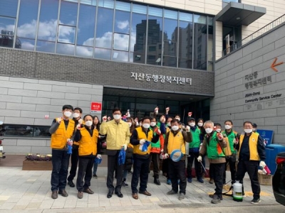 지산동 8개단체협의회 김창기 회장은 “지산동 단체회원 모두가 힘을 합친다면 극복하지 못할 위기는 없다”며 생업에 바쁜 중에도 소독활동에 참여해주신 단체회원들에게 감사를 표했다.