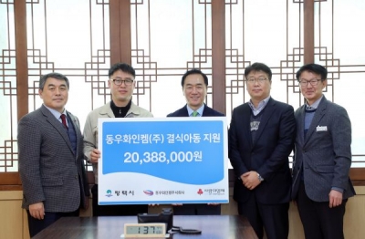 [충청뉴스큐] 동우화인켐 임직원들이 중식 및 석식비를 모금해 모은 성금을 평택시 관내 결식아동을 위해 써달라며 지난 5일 성금 2천만원을 평택시에 전달했다.