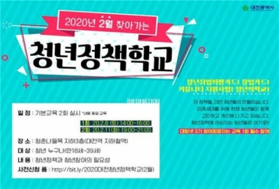 우선 2월에는 오는 8일 오후 2시와 11일 오후 7시에 청춘공간인 청춘나들목 지하 3층에서 정책학교가 열린다.
