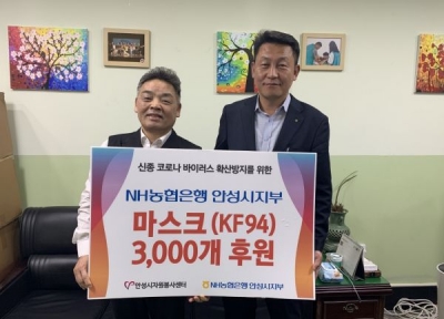 [충청뉴스큐] NH농협은행 안성시지부는 지난 11일 330만원 상당의 마스크 3,000개를 안성시자원봉사센터에 전달했다.
