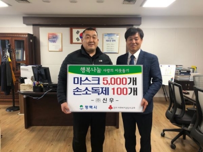 [충청뉴스큐] 평택시 팽성읍에 위치한 ㈜신우는 12일 신종 코로나바이러스 감염병 예방 및 확산 방지를 위해 송탄출장소를 방문해 어린이용 마스크 5,000개와 손소독제 100개를 기부했다.