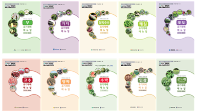 작물은 인삼, 가지, 곤드레, 옥수수, 수박, 고추, 양파, 포도, 매실, 무이며 각 매뉴얼에는 유기재배를 위한 품종 선택부터 토양 관리, 양분 공급, 병해충 관리 기술이 담겨 있다.