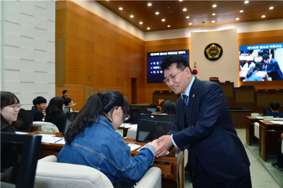 김생환 부의장은 “청소년 의회교실에서 직접 배우고 경험하게 되는 민주주의의 소중한 원리를 이해함과 동시에 청소년 어린이들이 민주시민으로 성장해나가는데 필요한 밑거름이 될 것”이라며 격려했다.