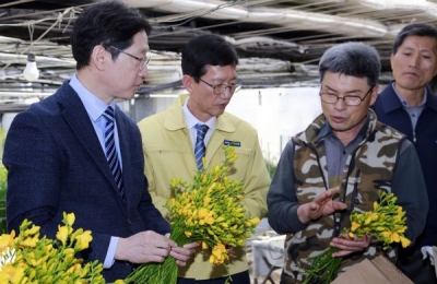 김 지사는 이날 오전 창원시 동읍에 위치한 꽃 재배 농가 두 곳을 연이어 방문해 어려움을 직접 듣고 농민들을 위로했다.